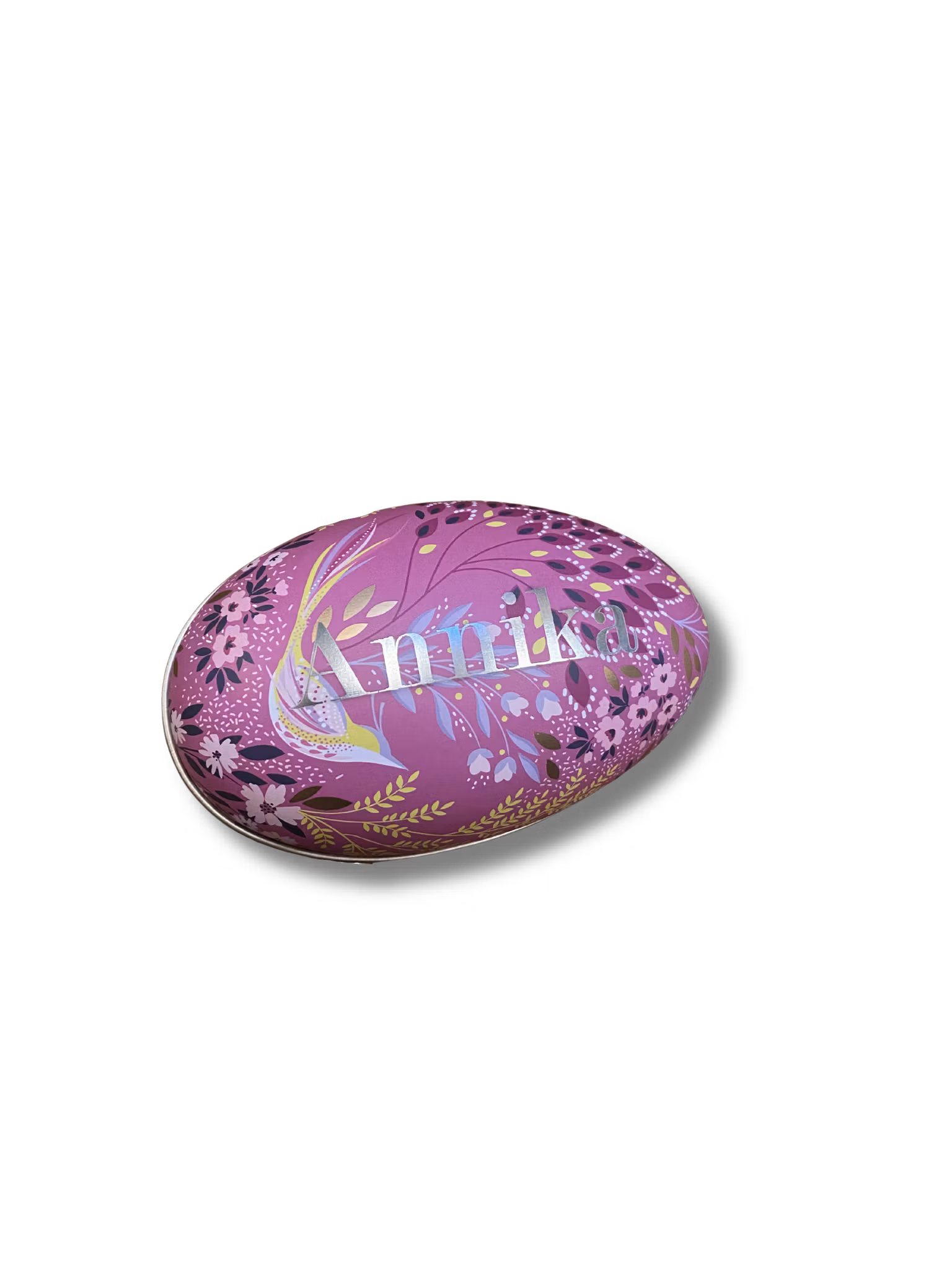 Litet påskägg i plåt med underbart mönster signerat Sarah Miller.