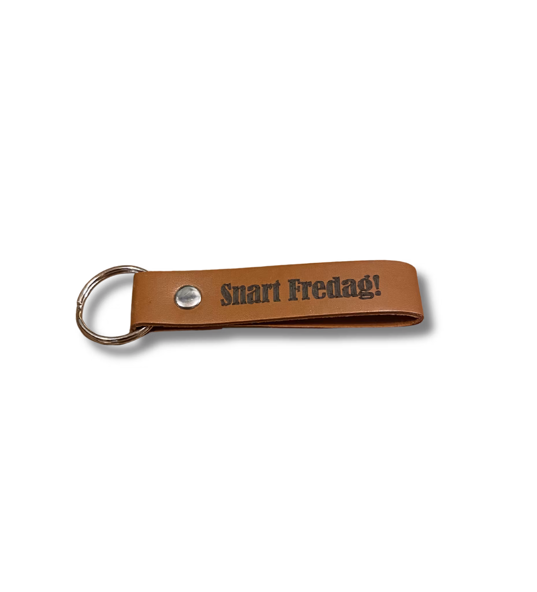 Nyckelring i PU-konstläder med valfri text graverad i klassiskt typsnitt
