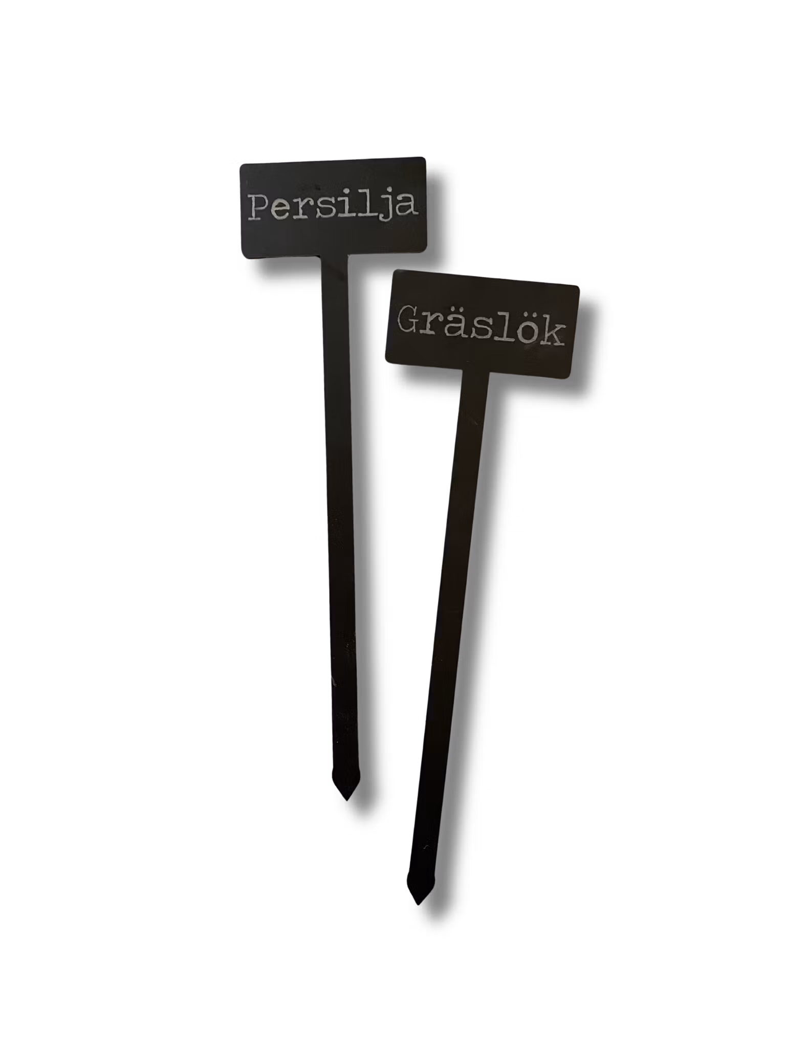 Växtskylt Platta - 1 styck 39 kr I lager Lägg i korgen Produktbeskrivning Vad andra tycker Håll reda på dina sådder med en riktigt snygg växtskylt! Gjord i svart matt akryl med valfri lasergraverad textMått: 21cm